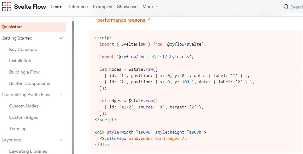 - reactflow, svelteflow official websites